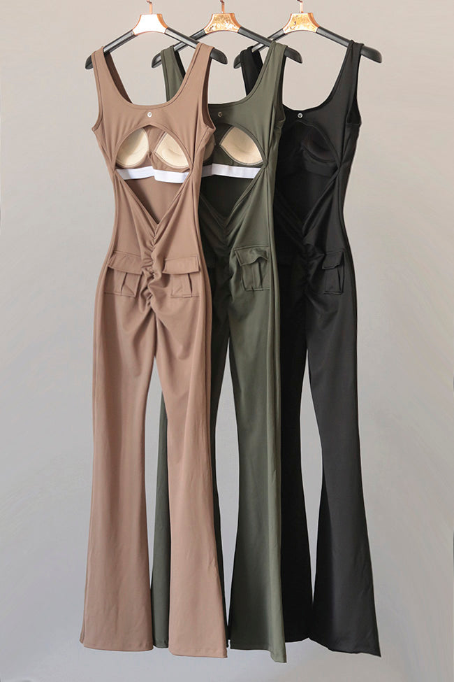 Diseñado para mujeres que buscan destacar dentro y fuera del gym. Este jumpsuit cargo combina comodidad, estructura y tendencia en una sola prenda. Su diseño con espalda descubierta y corte cruzado realza la figura, mientras que las bolsas tipo cargo añaden un toque urbano y funcional.